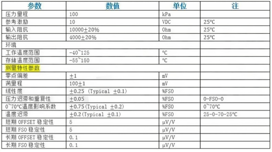 表-1:NPI-19VC-101G压力传感器参数表(1)
