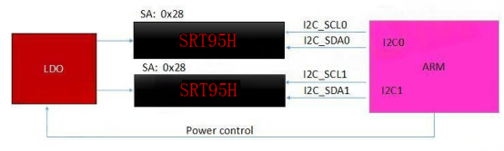(备注: SRT95H 有多个I2C地址可以选择。如果传感器的I2C设备地址都是0x28, 为避免总线冲突,需要分开控制传感器。使用多组I2C或者GPIO来控制,都是不错的方式)。