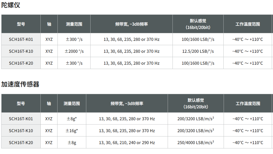 SCH16T系列 6DoF陀螺仪加速度传感器一体型